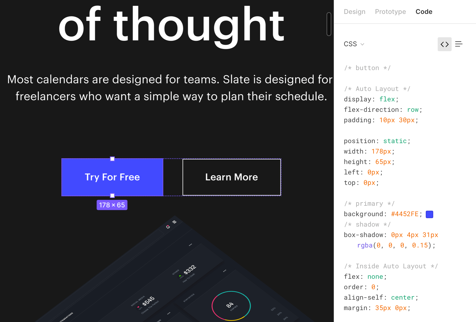 It’s important to note that the CSS is automatically generated and is not perfect, especially for positioning elements. Don’t copy all CSS 1-to-1 to your project but instead use it as a guide and a quick way to get information about elements.
