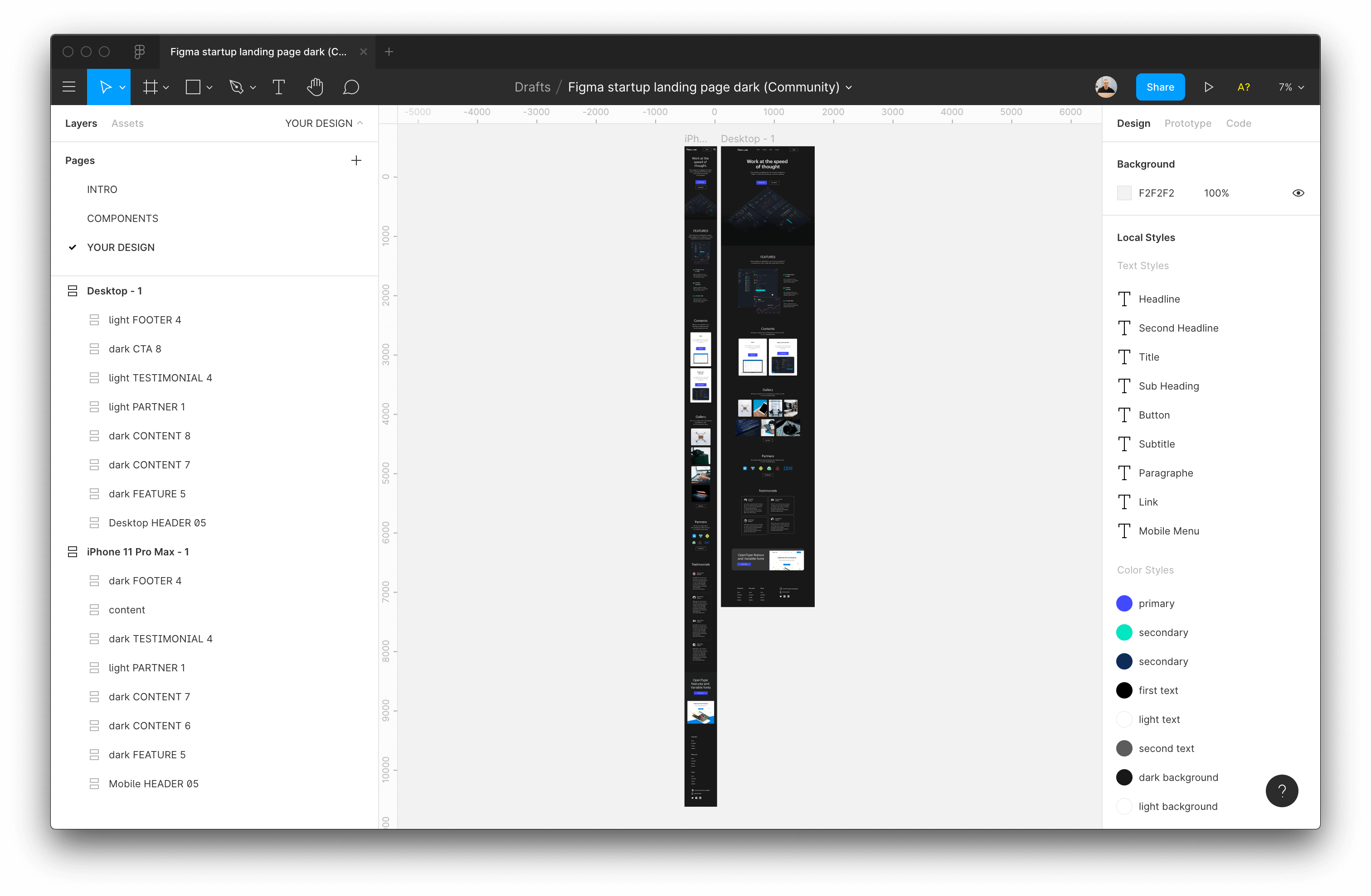When opening up a new file for the first time, make sure to familiarize yourself with the different pages within the file. If the designer you are working with has made a separate page for all colors, typography, and icons it can save you time while building out the design.