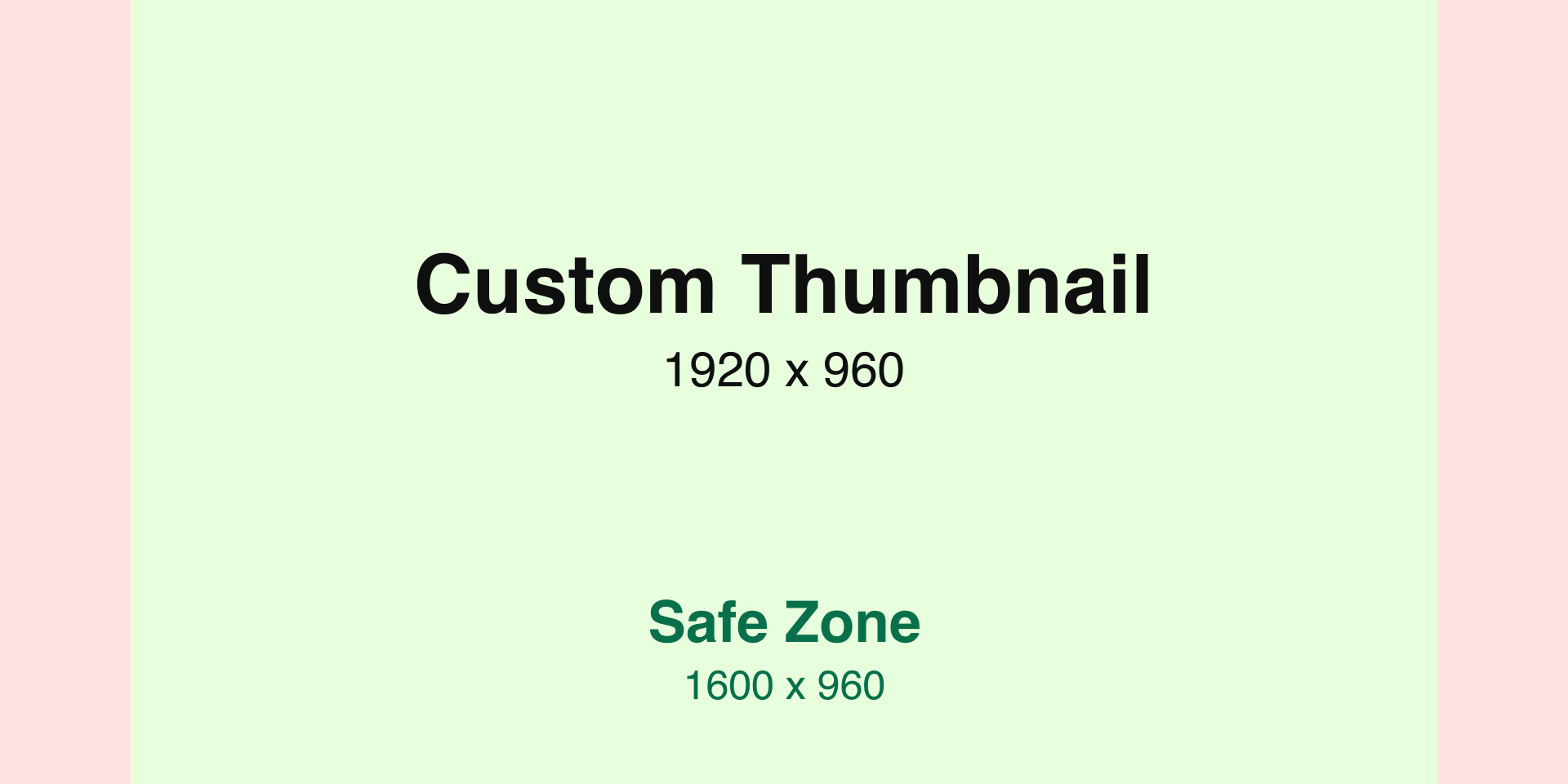 The recommended thumbnail dimensions are 1920 x 960 but in some situations the thumbnail is cropped. There is a 1600 x 960 “safe zone” which will always be displayed.