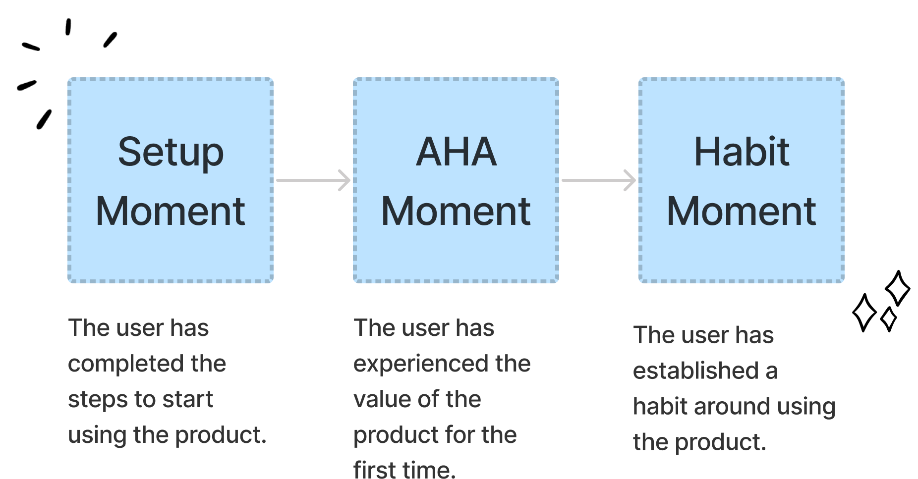 After that comes the "aha" moment. This is the moment when your user experiences the value of the product for the first time. Not just from reading your marketing material but experiencing it themselves and seeing how it can improve their lives.